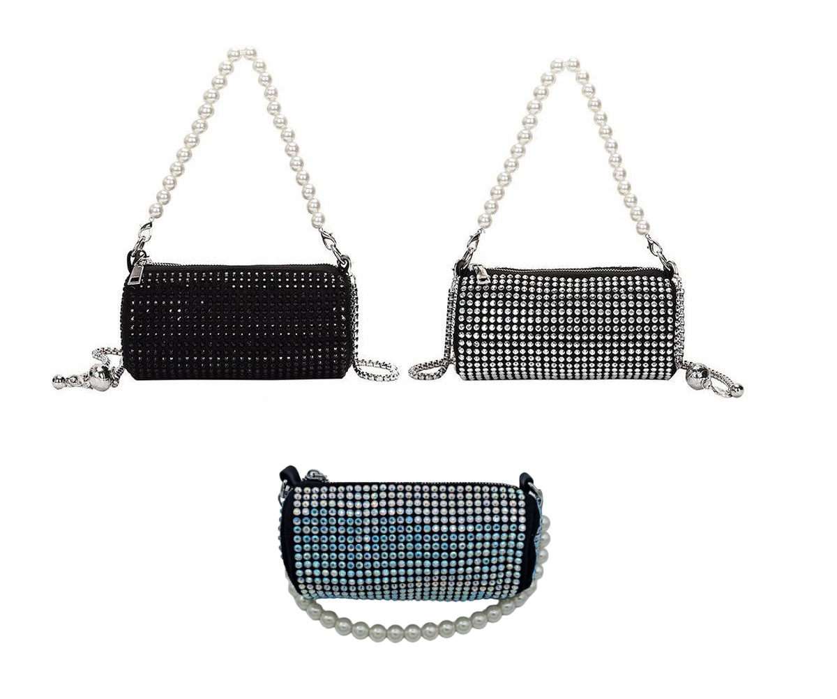 Bolso de Noche con pedrería en tres opciones de color, negro, plata, tornasol.