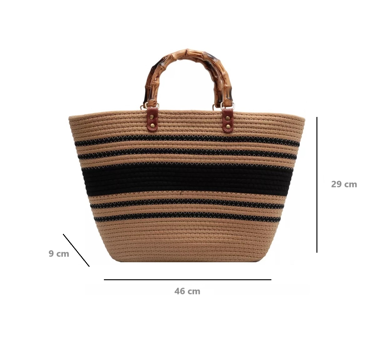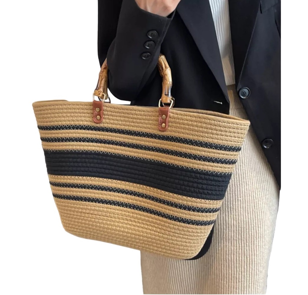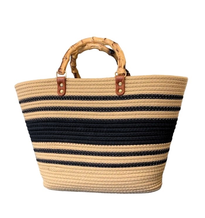 BOLSO TEJIDO PARA PLAYA, DISEÑO LINEAS, GRAN CAPACIDAD. MEDIDAS 46 CM X 28 CM X 9 CM